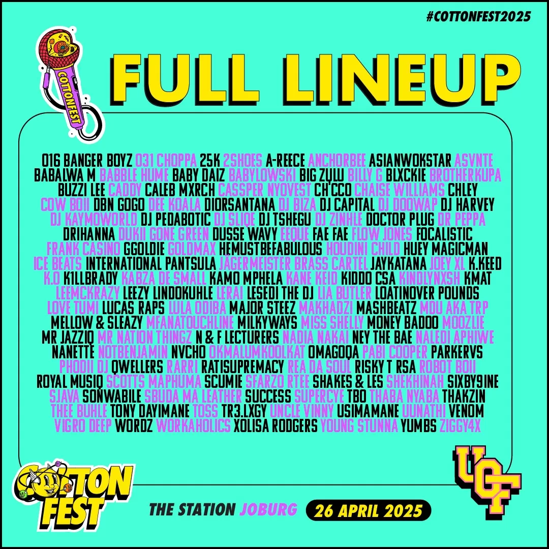 Johannesburg, South Africa – The countdown is over, the full lineup has landed, and Cotton Fest 2025 is officially sold out! With an electric, genre-defying artist bill and a culture-rich program, this year’s edition of the iconic urban music festival has once again proved why it’s a non-negotiable on the local entertainment calendar.