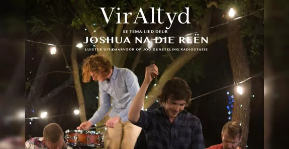 Die musiekvideo vir die liedjie VIR ALTYD, deur Joshua na die Reën, is pas hierdie naweek bekendgestel! Dit is die temalied vir die fliek met dieselfde naam wat vanaf 12 Februarie 2016 in teaters landswyd te sien sal wees. Suid Afrika se gunsteling silwer-doek paartjie, Ivan Botha en Donnalee Roberts, is weer te sien in hierdie romantiese verhaal, en as jy meer wil uitsien, kyk na die lokprent, deur hier te click.